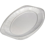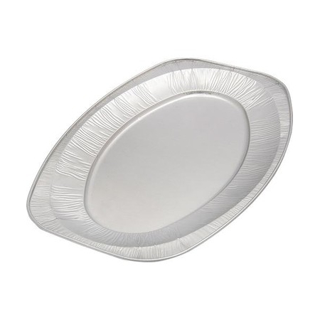 Alüminyum Oval Tepsi Büyük, 43 cm uzunluğunda, 29 cm eninde alüminyum oval tepsidir. Yüksek ısıya dayanıklı (+350°C) olması tek kullanımlık alüminyum oval tepsi fırında kullanımına olanak sağlamaktadır. Tek kullanımlık alüminyum kap orijinal rengi olan gümüş rengindedir. Alüminyum kapların geniş kullanım alanları bulunmaktadır. Alüminyum kap paket servislerde taşıma kabı olarak sup kase, sütlaç kabı, sufle kabı, künefe kabı, yemek kaseleri, 2-3 gözlü kaseler ve daha fazlası için kullanılmaktadır. Alüminyum Oval kase catering, lokanta, pastane, fırın, şarküteri, kebap ve döner firmalarının sıcak ve soğuk yemek paket servislerinde kullanabilecekleri tek kullanımlık üründür.